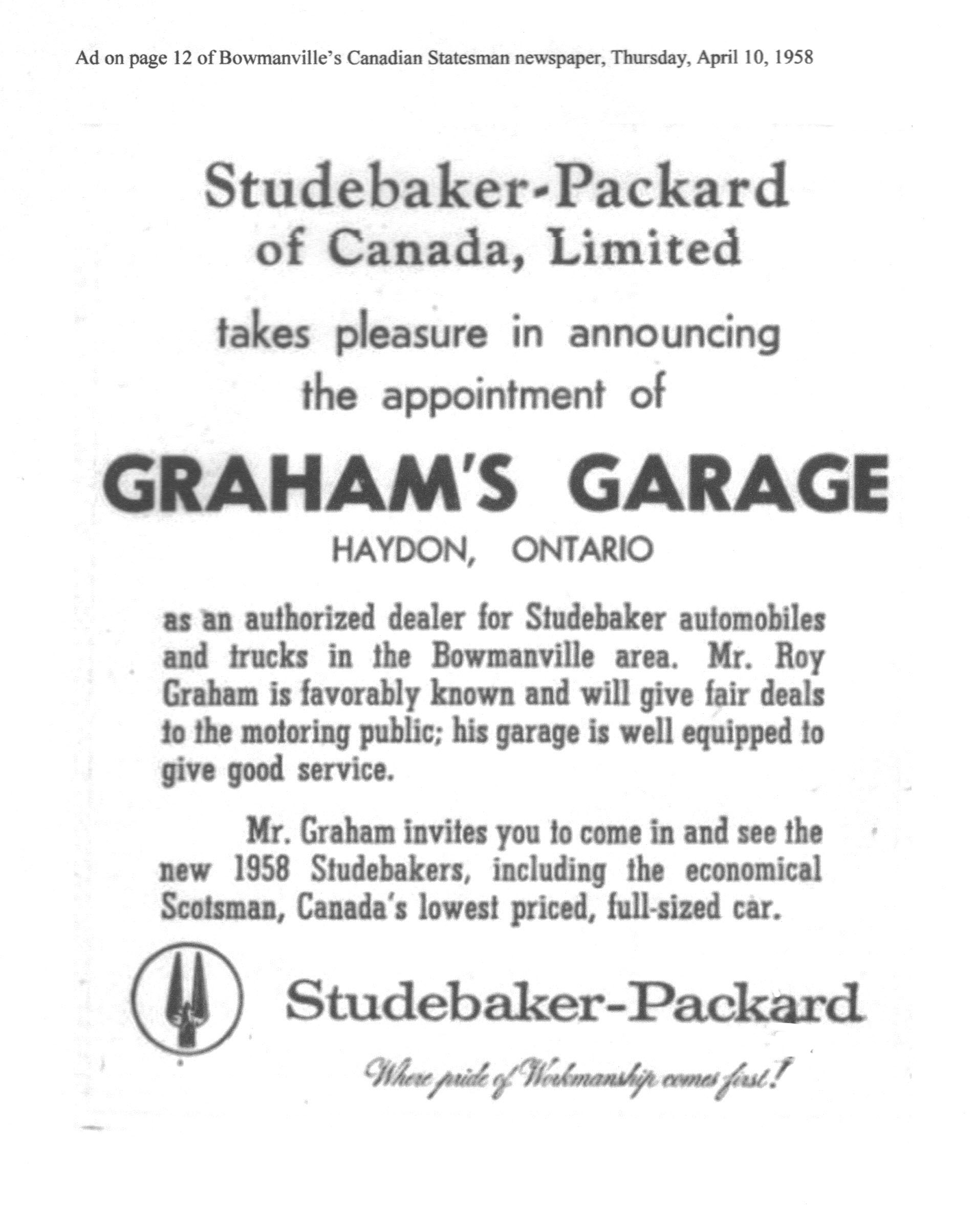 In 1958 he received his Studebaker dealership and started to sell & service new Studebakers up until the closure of the Hamilton Plant in 1966.